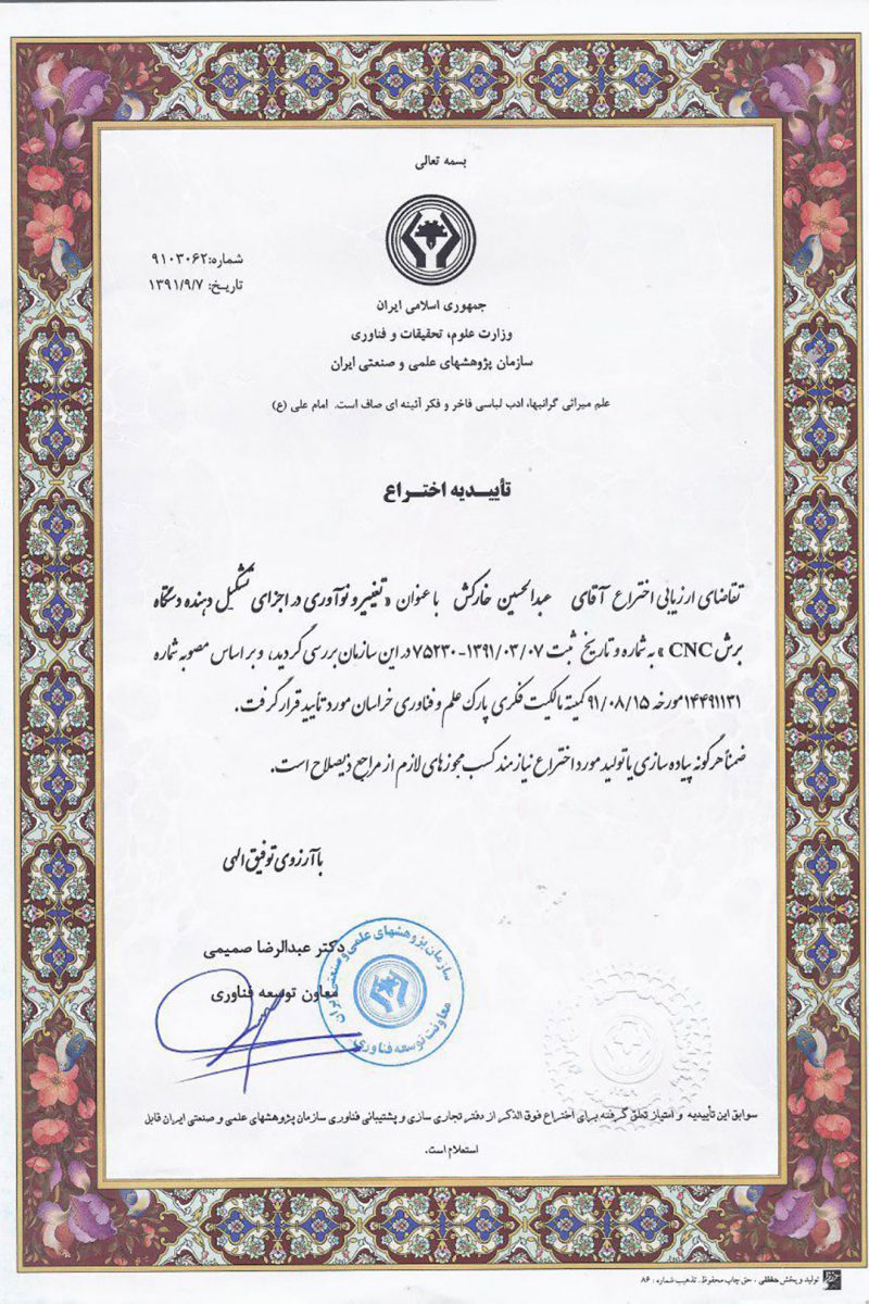 1. اولین وتنها دارنده عنوان دانش بنیان درزمینه ماشن آلات برش CNC
